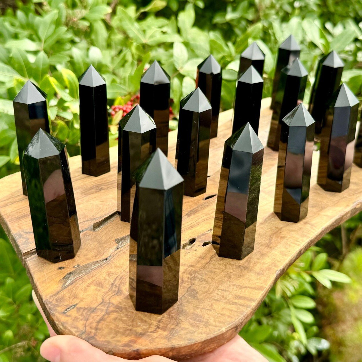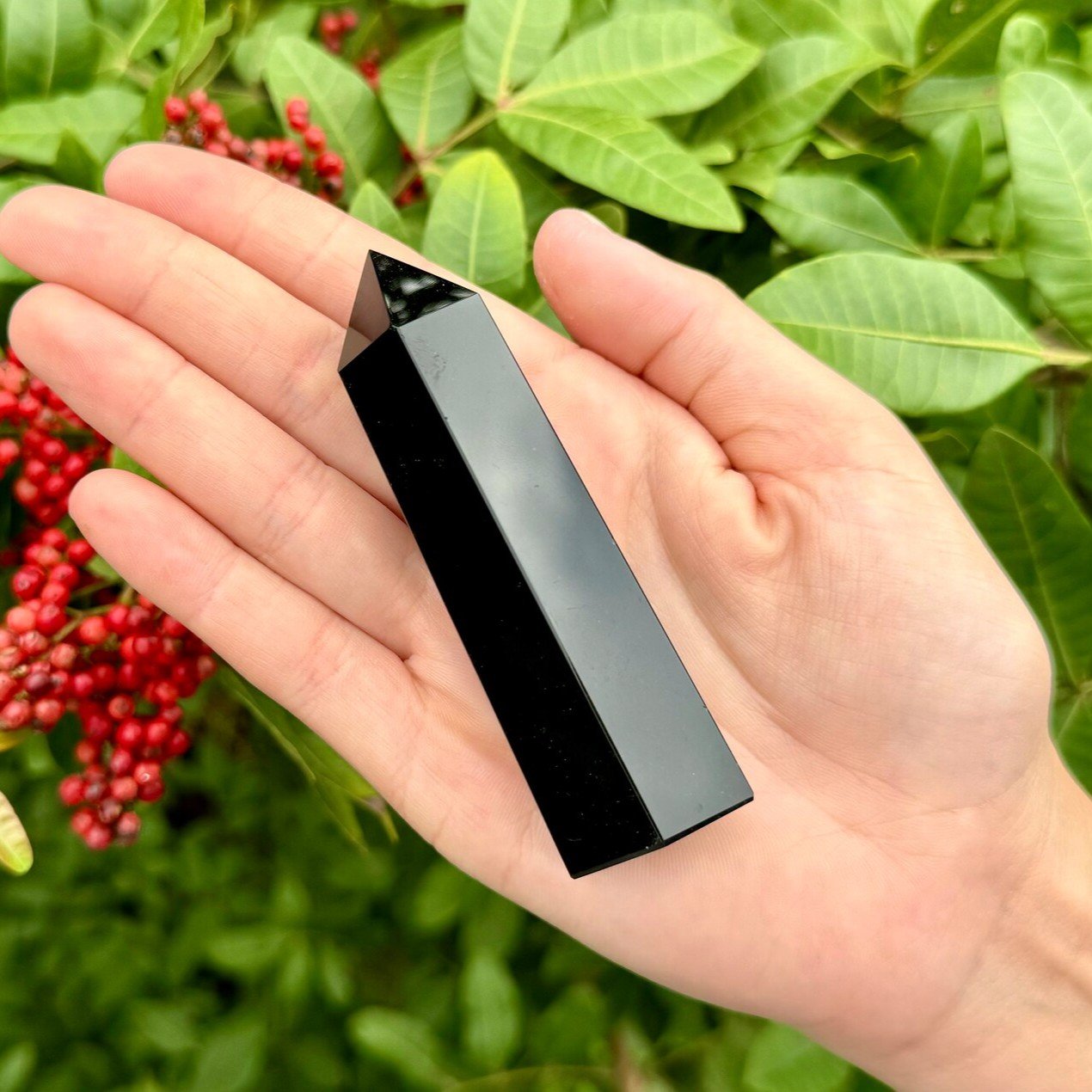 The black obsidian pointing tower is a powerful and protective crystal that provides strength and grounding. The crystal is believed to absorb and transmute negative energies, providing a shield against psychic attacks and negativity.