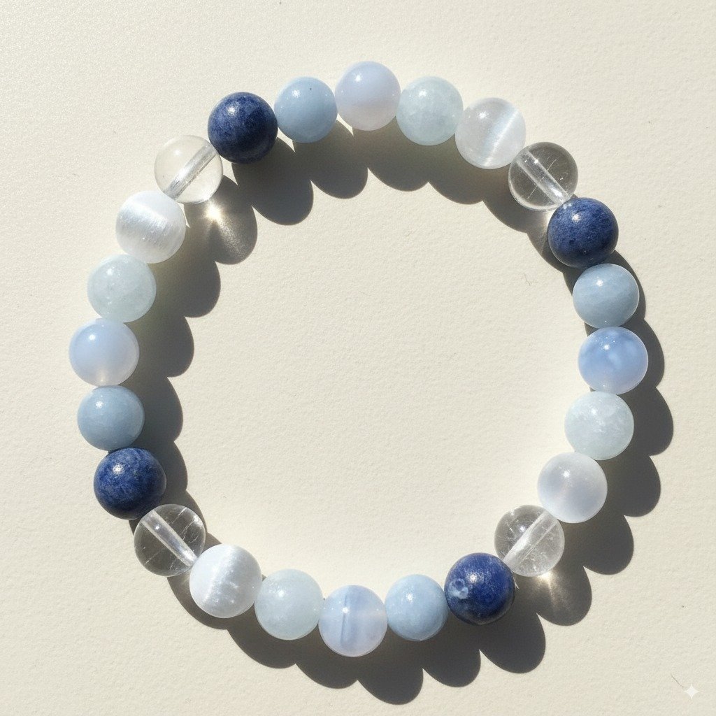➞ Beads Name: Selenite, Angelite, Aquamarine, Blue Lace Agate, Sodalite, Clear Quartz