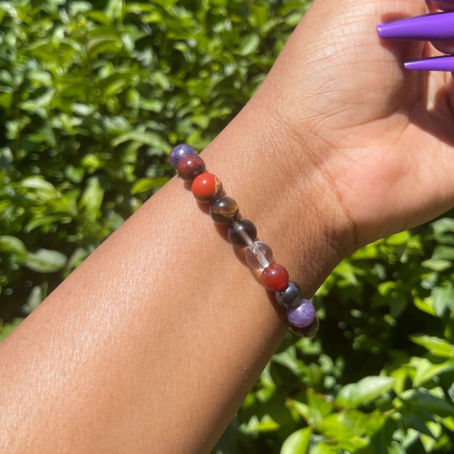 ➞ Beads Name: Lepidolite, Carnelian, Hematite, Red Jasper, Smoky Quartz, Clear Quartz, Tiger Eye