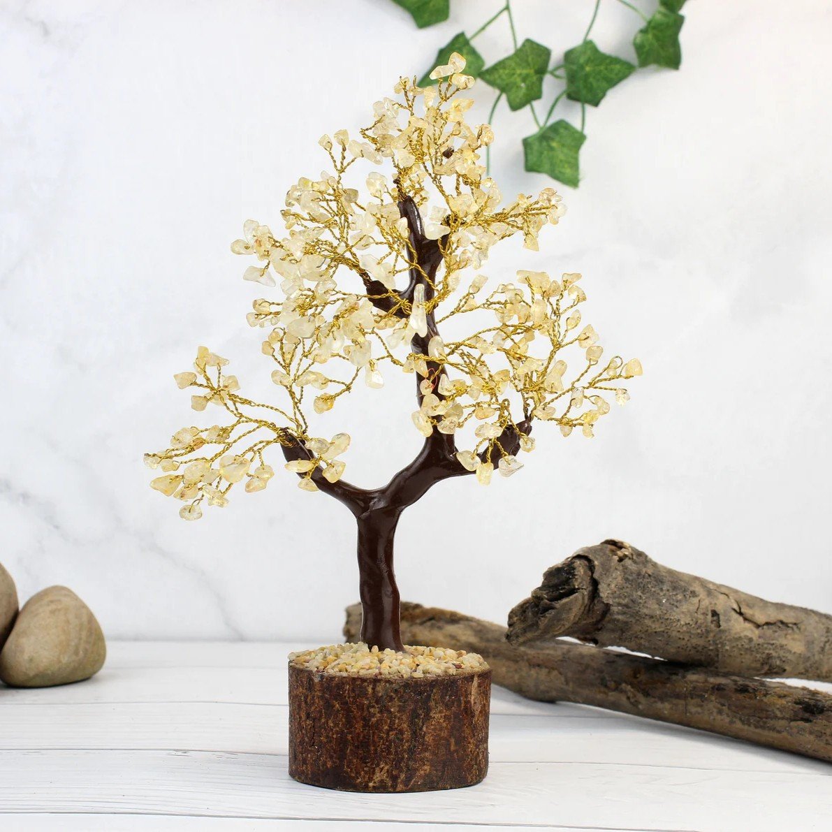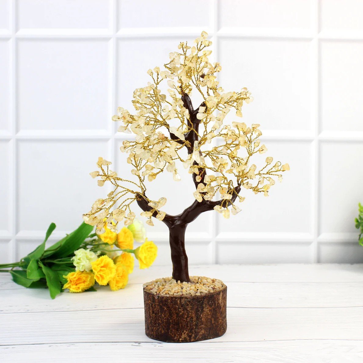 The citrine crystal tree is believed to attract wealth, success, and abundance. Placing it around you is thought to create a protective shield, helping to maintain a positive and harmonious atmosphere.