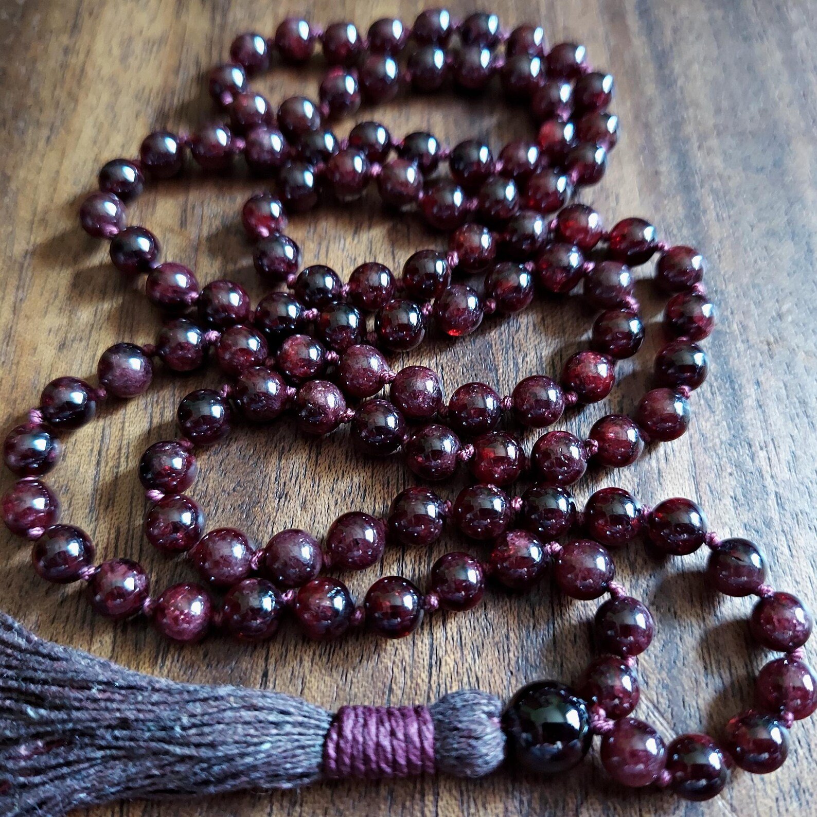 Garnet becomes a powerful and symbolic tool for meditation and spiritual practices. Garnet mala is used for providing motivation and helping to ease feelings of fear, anxiety, and insecurity. It may promote a sense of self-confidence and courage.