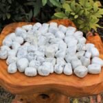 Howlite Tumble Stone is a white-colored healing gemstone. Howlite stone gives you the strength to overcome emotional problems and attachments. It cures mental illness and unstable minds. It makes the mood happy and calm. Howlite is beneficial for treating mental stress, anxiety, and depression. Howlite is kept under the pillow to get rid of nightmares and get good sleep. It makes the person calm and increases their patience. It absorbs the negative energies around you and gives you a positive vibe, which makes your mind calm and gives you peace. Other benefits of howlite are that it cures health diseases related to teeth and bones.