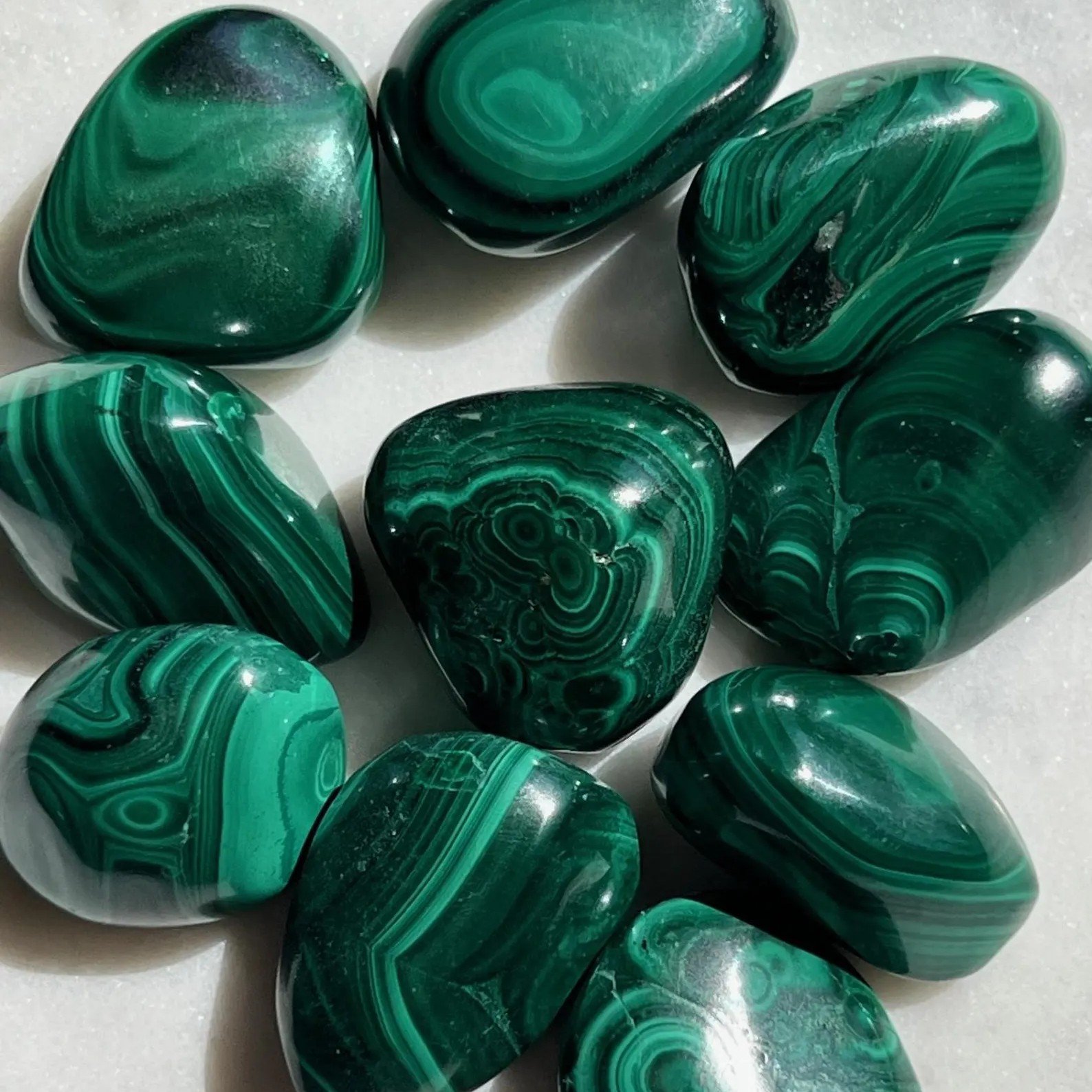 Malachite tumbled stone is a green-colored healing crystal containing many properties and used to heal many illnesses. Keeping malachite at home attracts wealth and good health. It promotes a better relationship with love and harmony. It removes and controls anxiety and protects from any type of psychic attack. It will help you easily move on. Other benefits of this stone are that it helps you achieve success easily and improves concentration. Malachite is an effective stone for those who are suffering from any disease related to the eyes, heart, or blood pressure.
