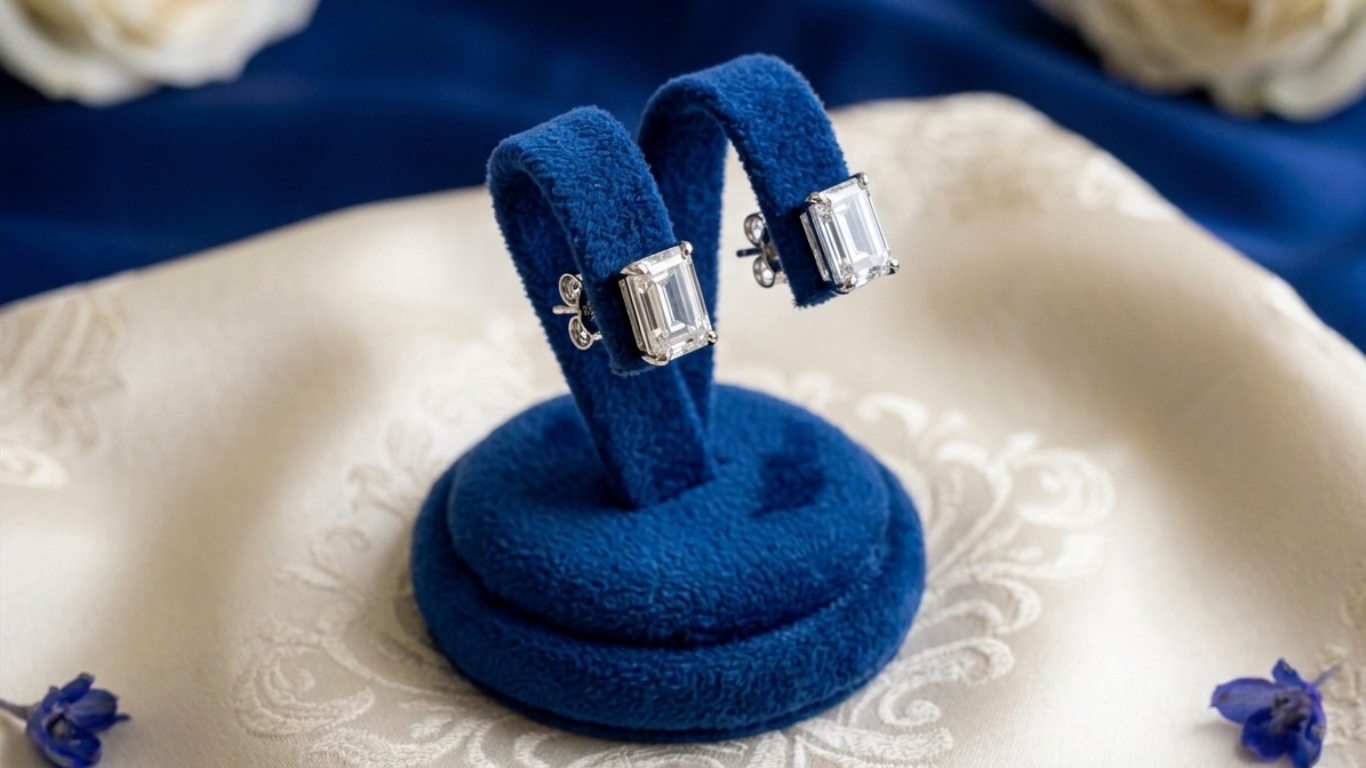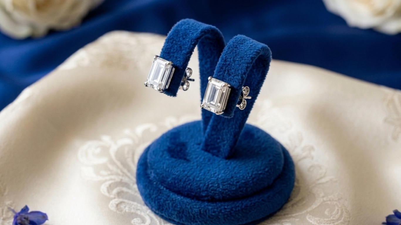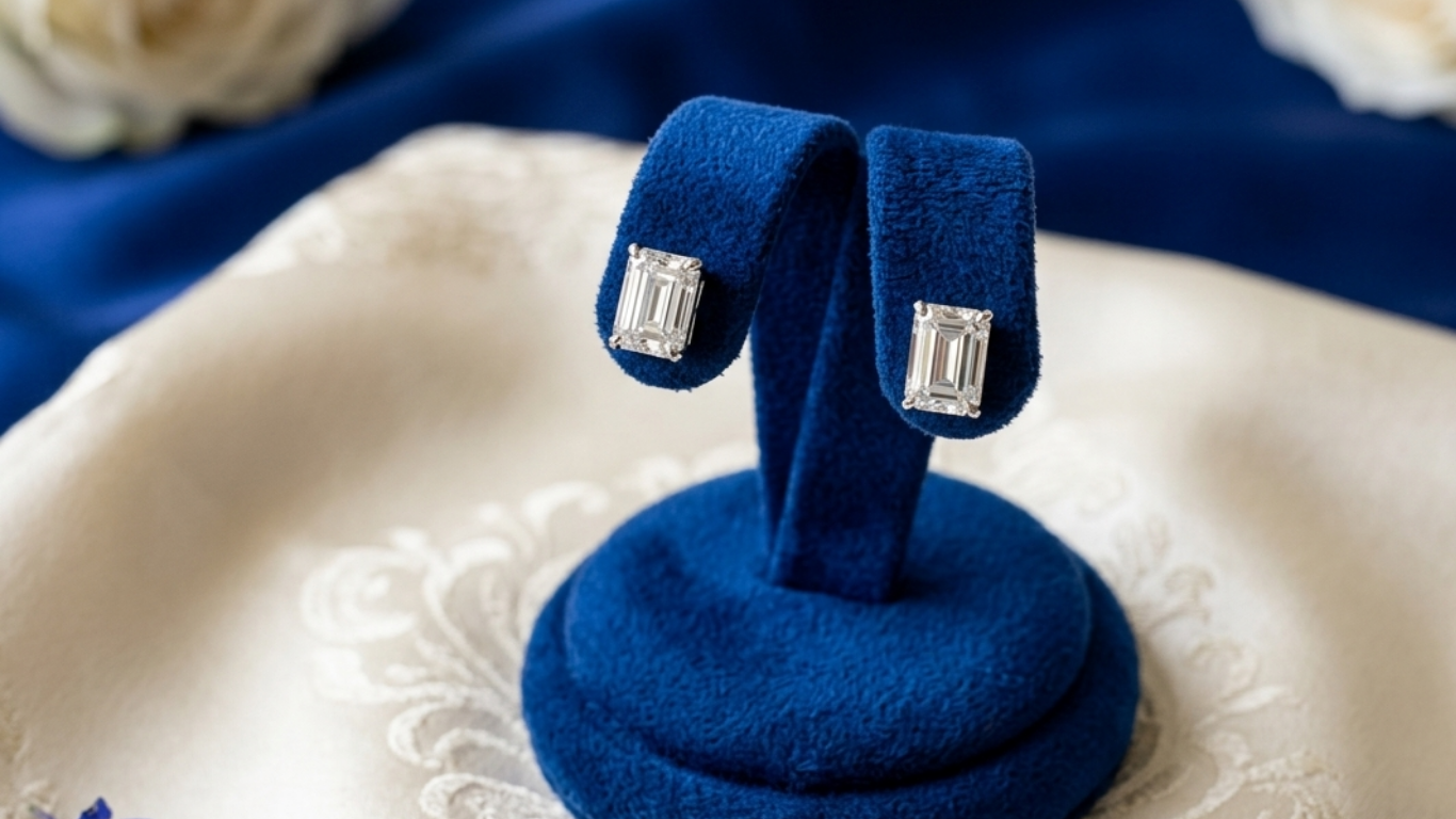 Emerald cut diamond studs are known for their clarity and understated elegance. Their step-cut design highlights the purity of the diamond, making them perfect for buyers who value sophistication over excessive sparkle.