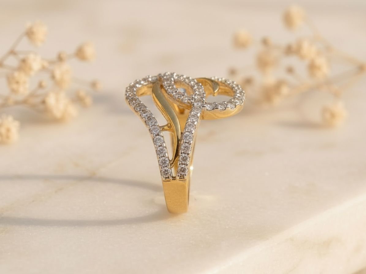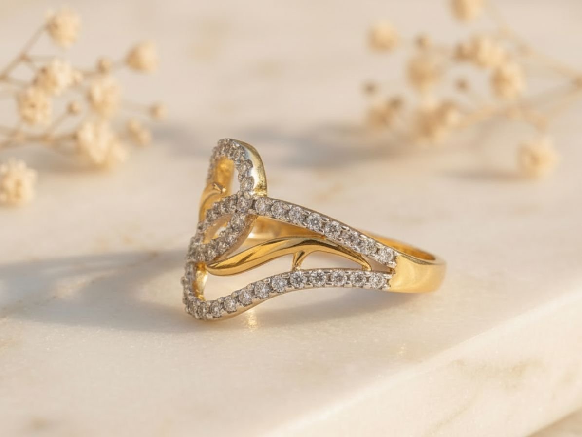 The Infinity Wave Diamond Ring represents continuity, love, and timeless beauty. Its flowing design and delicate sparkle make it a perfect expression of modern elegance.