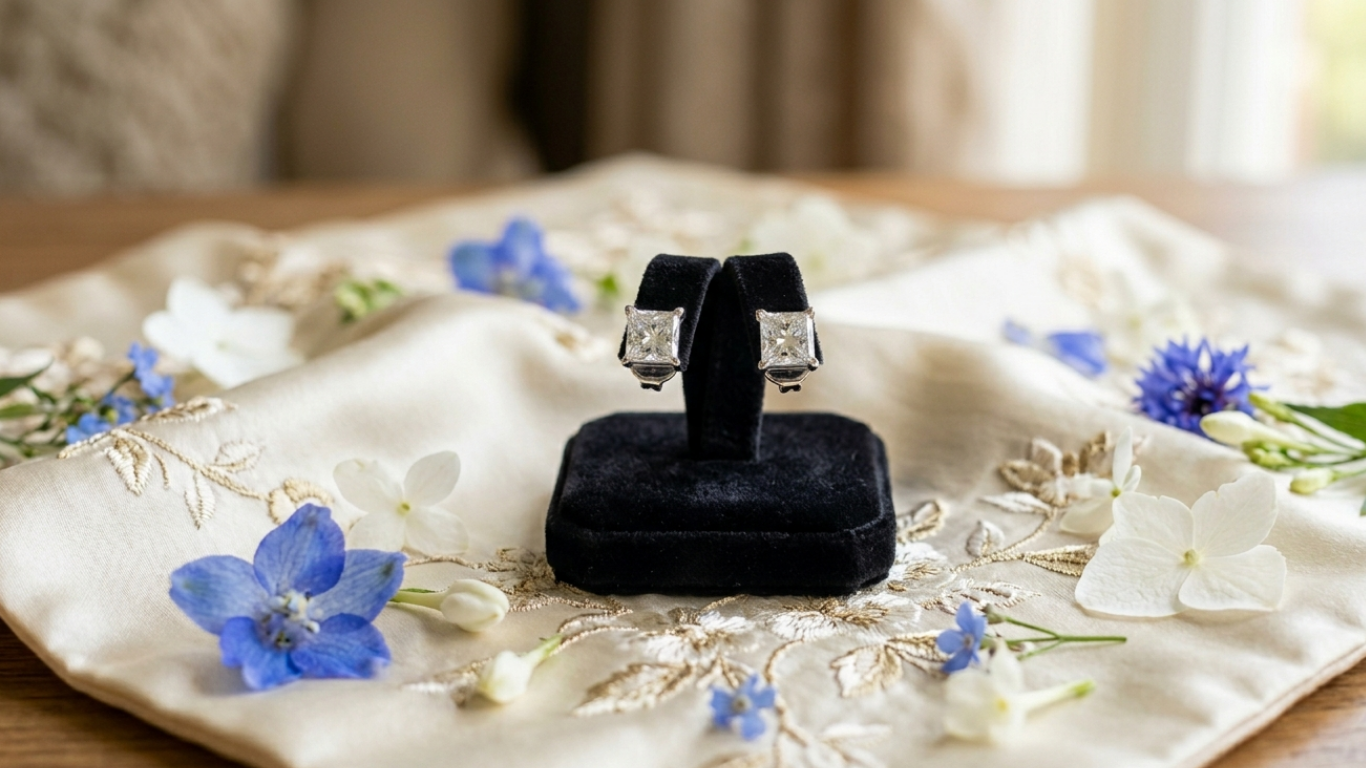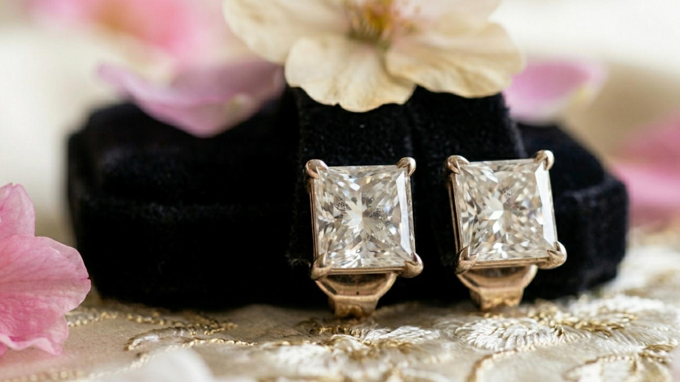 Princess cut diamond studs are loved for their sharp edges and brilliant sparkle, offering a modern alternative to classic round diamonds. They are perfect for buyers who want a bold yet elegant everyday jewelry piece.