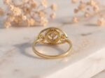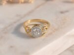 Polished Gold Setting: Warm gold perfectly complements the diamond’s fire.