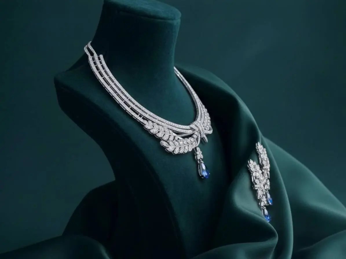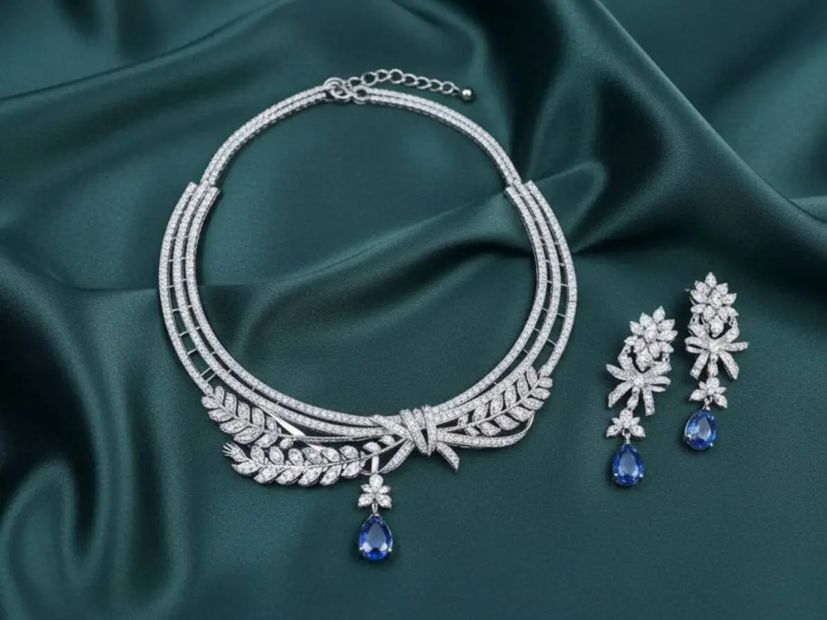 Each leaf element is intricately crafted to capture light from every angle, while the deep blue sapphires add a striking contrast to the brilliance of diamonds. This harmonious blend of natural inspiration and fine craftsmanship results in a necklace set that feels elegant, refined, and timeless.