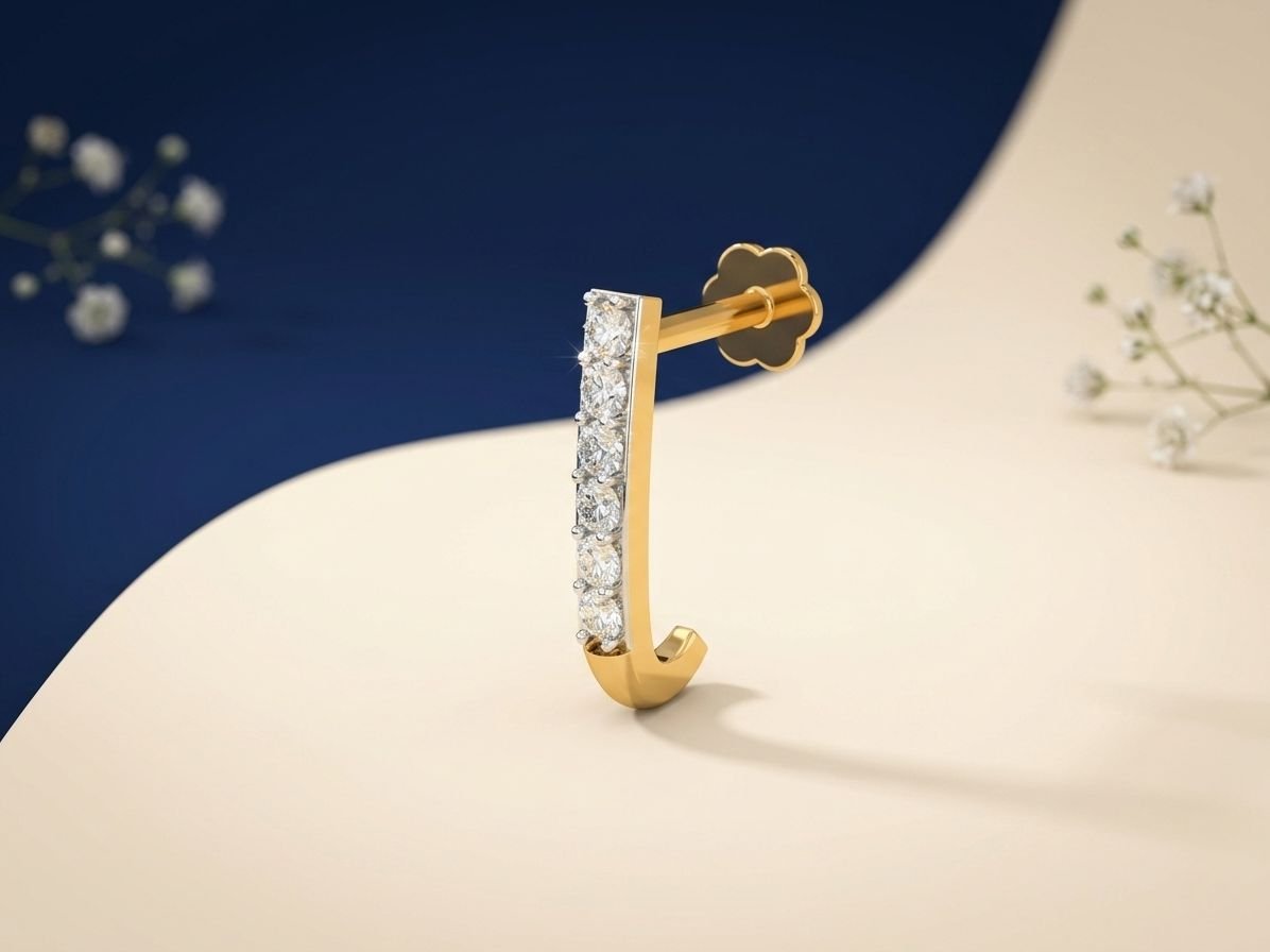 The Sleek Curve Diamond Nose Pin represents grace, simplicity, and modern sophistication. Its clean design and gentle sparkle make it a timeless addition to your jewellery collection.