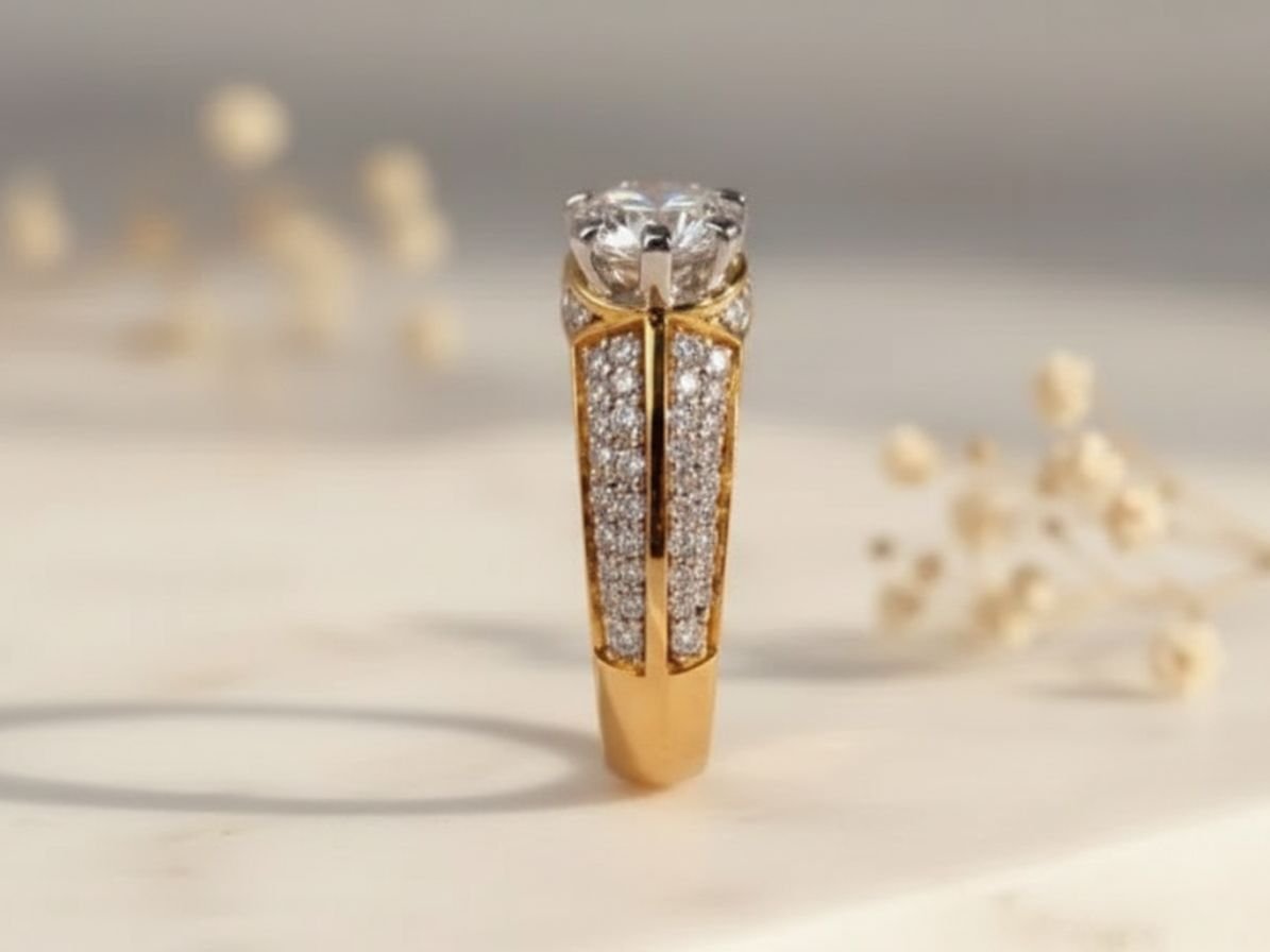 This split shank pavé solitaire ring offers the same brilliance and elegance as natural diamond jewellery while being more sustainable and budget-friendly. It is a perfect choice for modern buyers looking for refined luxury.