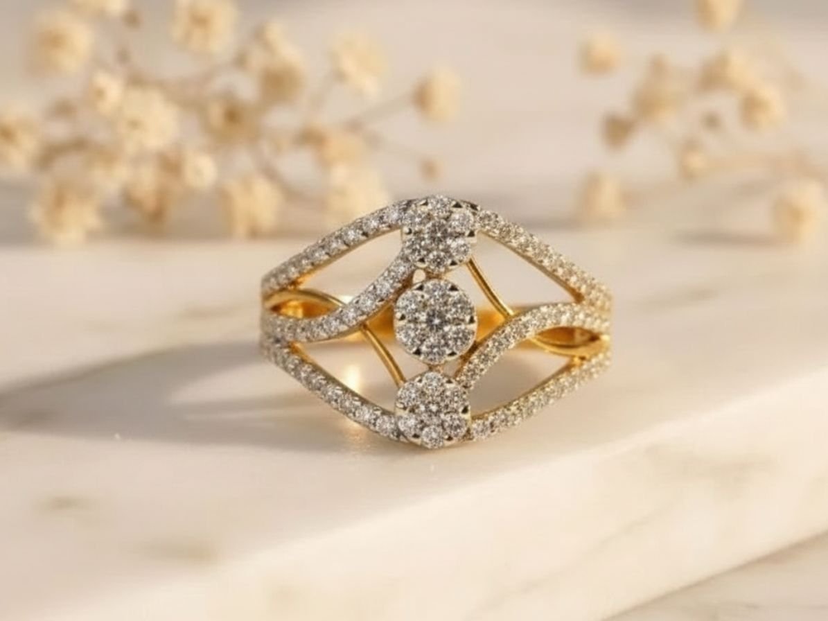 This triple cluster split shank ring offers enhanced brilliance and a premium look at a more affordable price. It is perfect for modern buyers who want a bold, luxurious design without overspending.