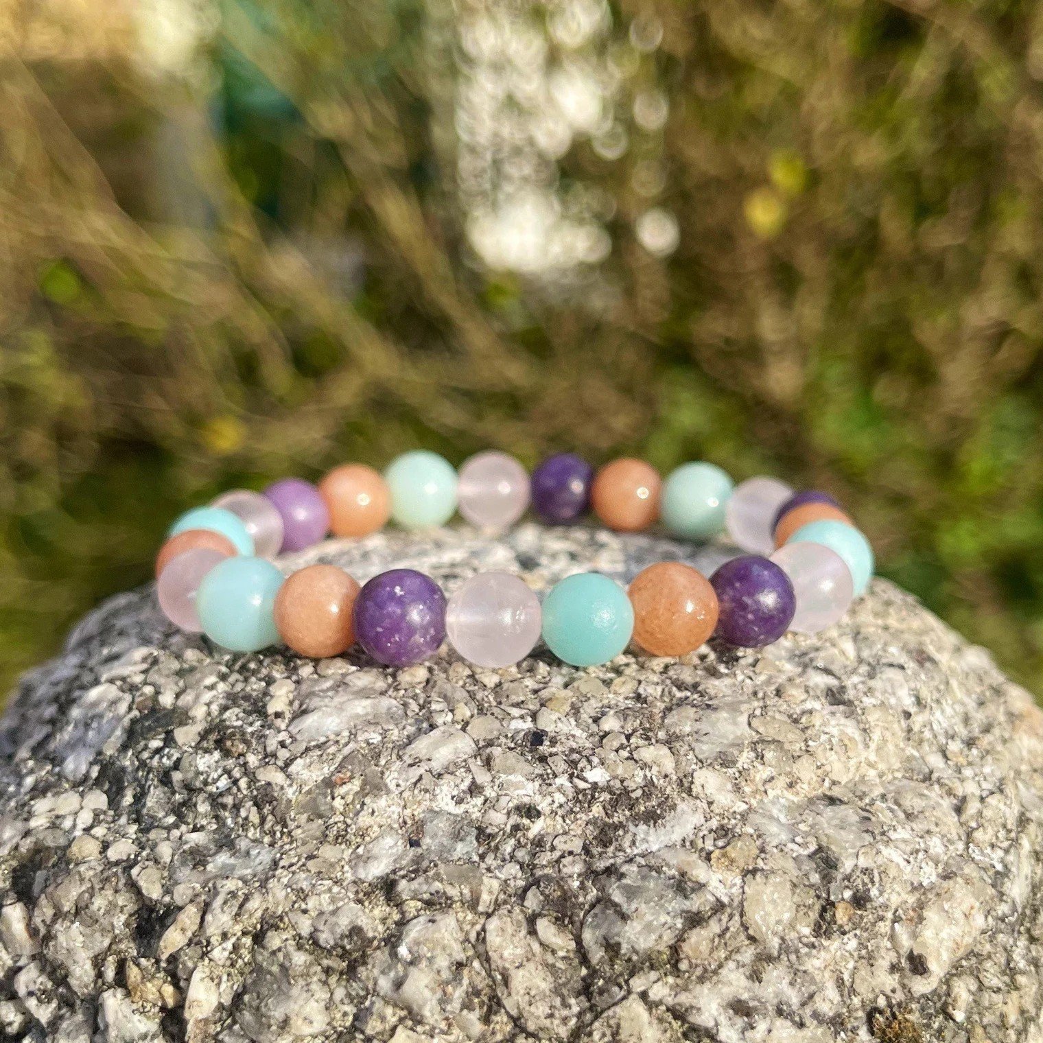The PTSD Support Bracelet Combination features Amazonite, Sunstone, Lepidolite, and Rose Quartz, specially chosen to calm the mind, release emotional stress, and encourage inner peace. This gentle blend supports healing, positivity, and emotional strength during recovery.