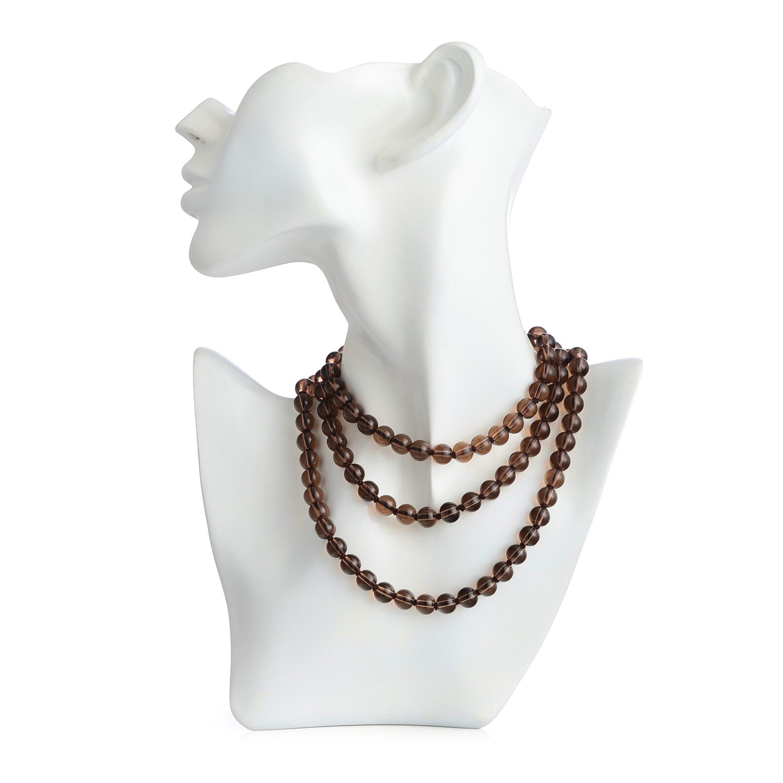 Smoky quartz is often associated with grounding and stabilizing energy. It is considered a protective stone. Smoky quartz mala is believed to absorb and transmute negative energies, providing a shield against psychic attacks, stress, and negative emotions, and promoting mental clarity, focus, and calmness.