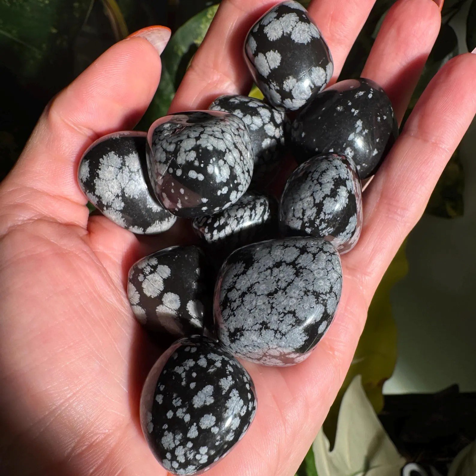 Snowflake is a volcanic glass that typically has a black or dark brown base color with white or gray snowflake-like patterns. It is a tumble stone that can help to balance the body, mind, and spirit, encouraging a sense of stability and helping to cleanse negative energy and emotions.