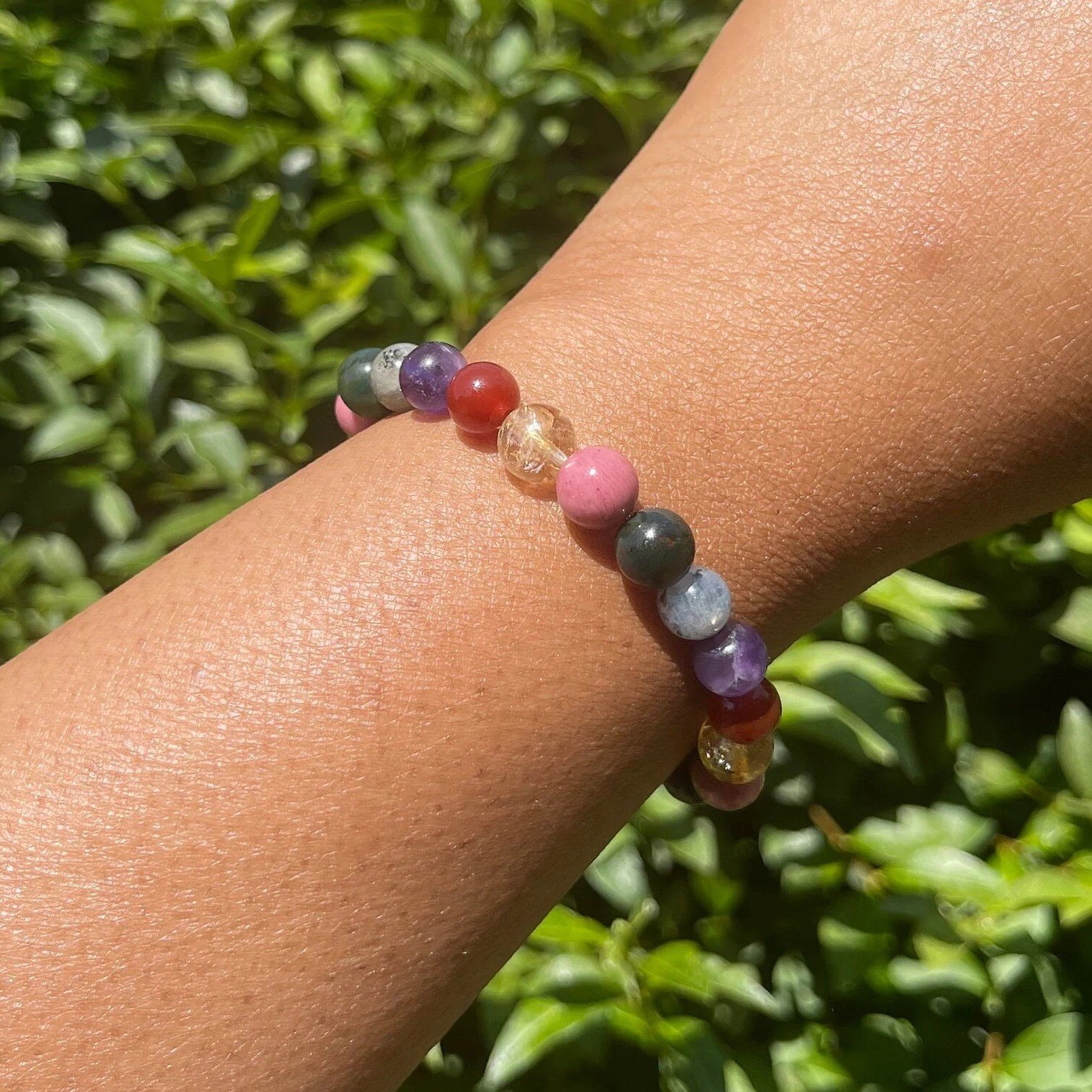 The Strong Immunity System Bracelet Combination features Citrine, Carnelian, Amethyst, Labradorite, Rhodonite, and Moss Agate, known for their natural healing energies. This powerful blend helps boost vitality, strengthen immunity, and promote overall physical and emotional well-being.
