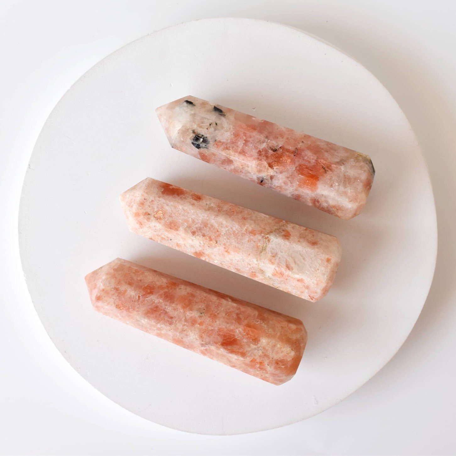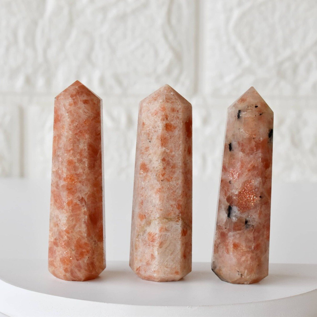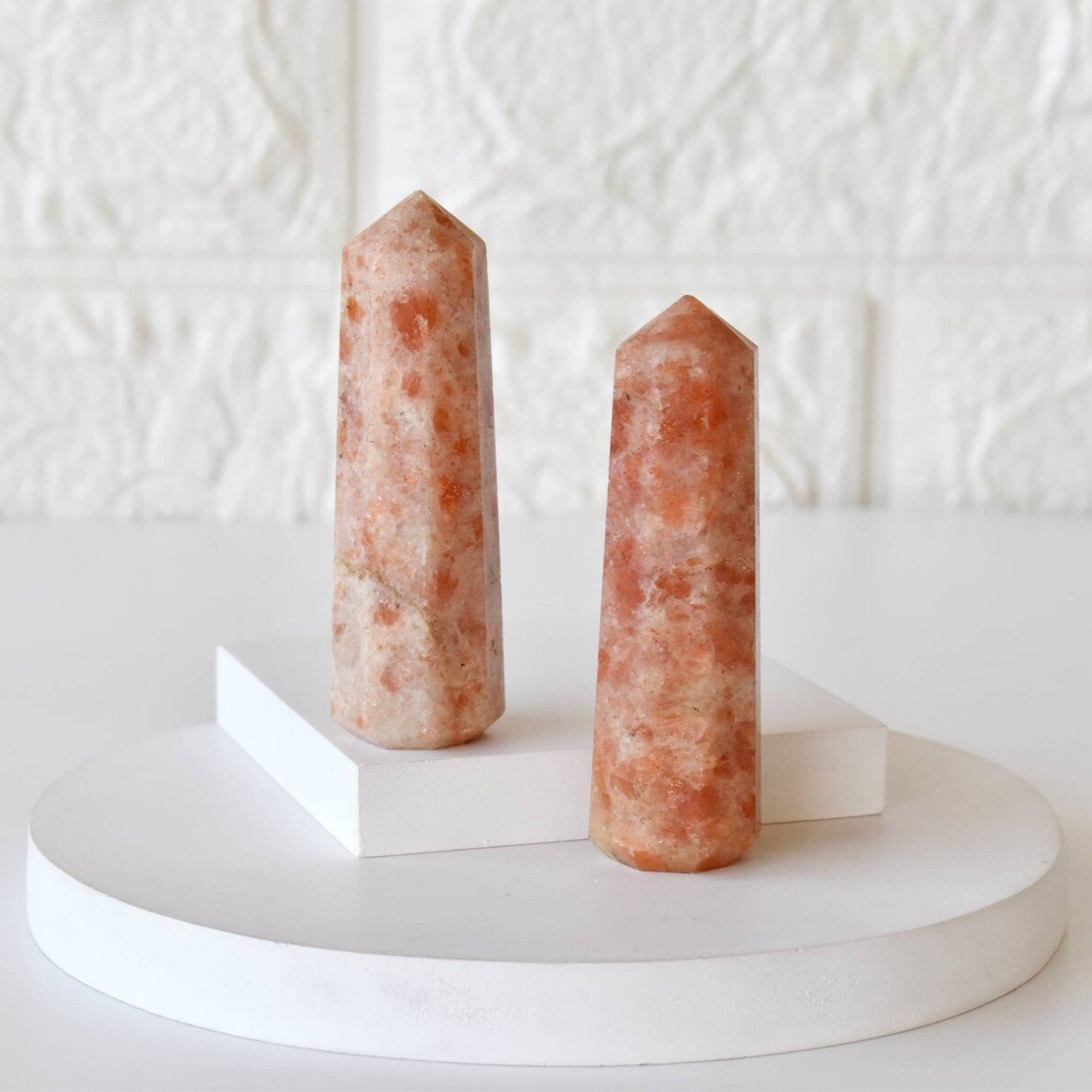 A sunstone pointing tower is associated with bringing in positive energy. It is believed to uplift the spirit, dispel negative thoughts, promote a sense of well-being, and support emotional healing and balance.
